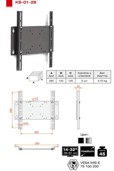 | Max mounting hole diameter | 5-6мм |