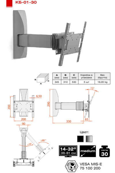 | Type wall-mount | Full-Motion |