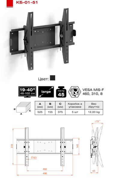 | Max distance between mounting holes | 460x300мм |