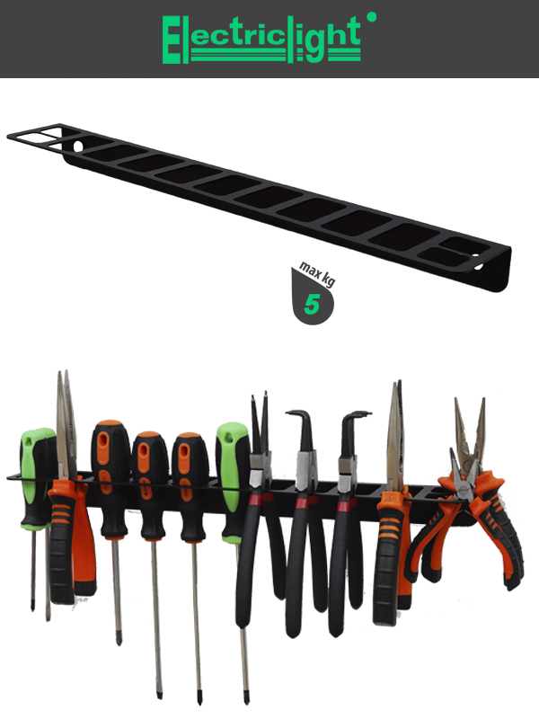 Этот настенный кронштейн предназначен для удобного хранения ручного инструмента, включая отвертки, плоскогубцы и пассатижи.