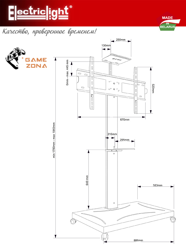 | Регулировка наклона | Нет. (±15 дополнительный комплект. При заказе необходимо указать) |