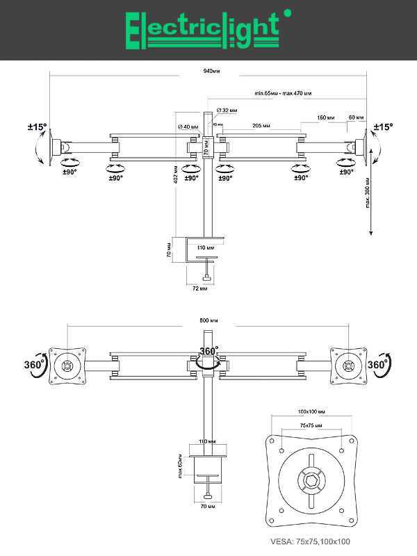 | Тип кронштейна | Настольный |
