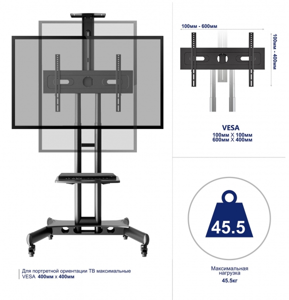 | VESA | 100x100, 200x100, 200x200, 300x100, 300x200, 300x300, 400x200, 400x300, 400x400, 500x400, 600x400 |