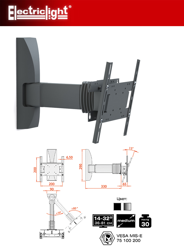 | Тип кронштейна | Наклонно-поворотный |