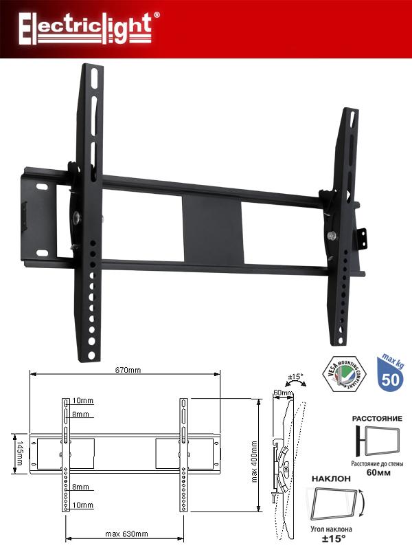 | Тип кронштейна | Наклонный |
