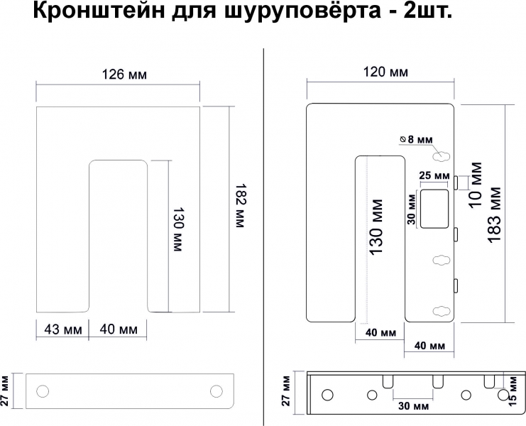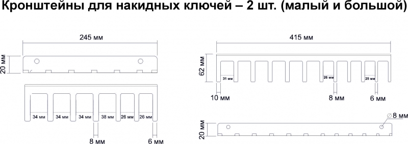 8 навесных кронштейнов в комплекте: под отвёртки, ключи, шуруповёрты и другое;